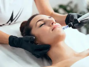 Un lifting raffermissant non invasif, combinant ondes radio et oxybrasion pour reconstruire collagène et élastine, réduire rides, cicatrices, et affiner les contours du visage. (1 heure)
